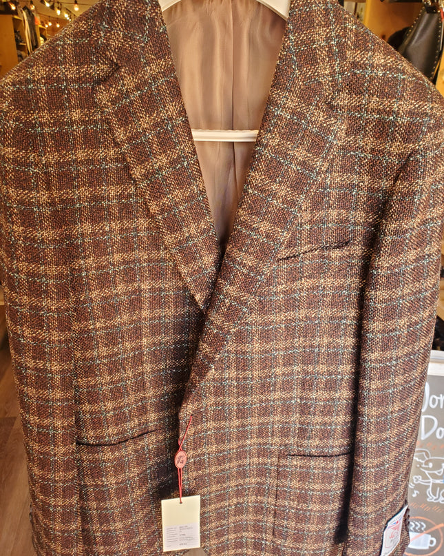 Byron Byron Textured Plaid Premium Wool/Silk Blend Sport Coat - Brown/Teal