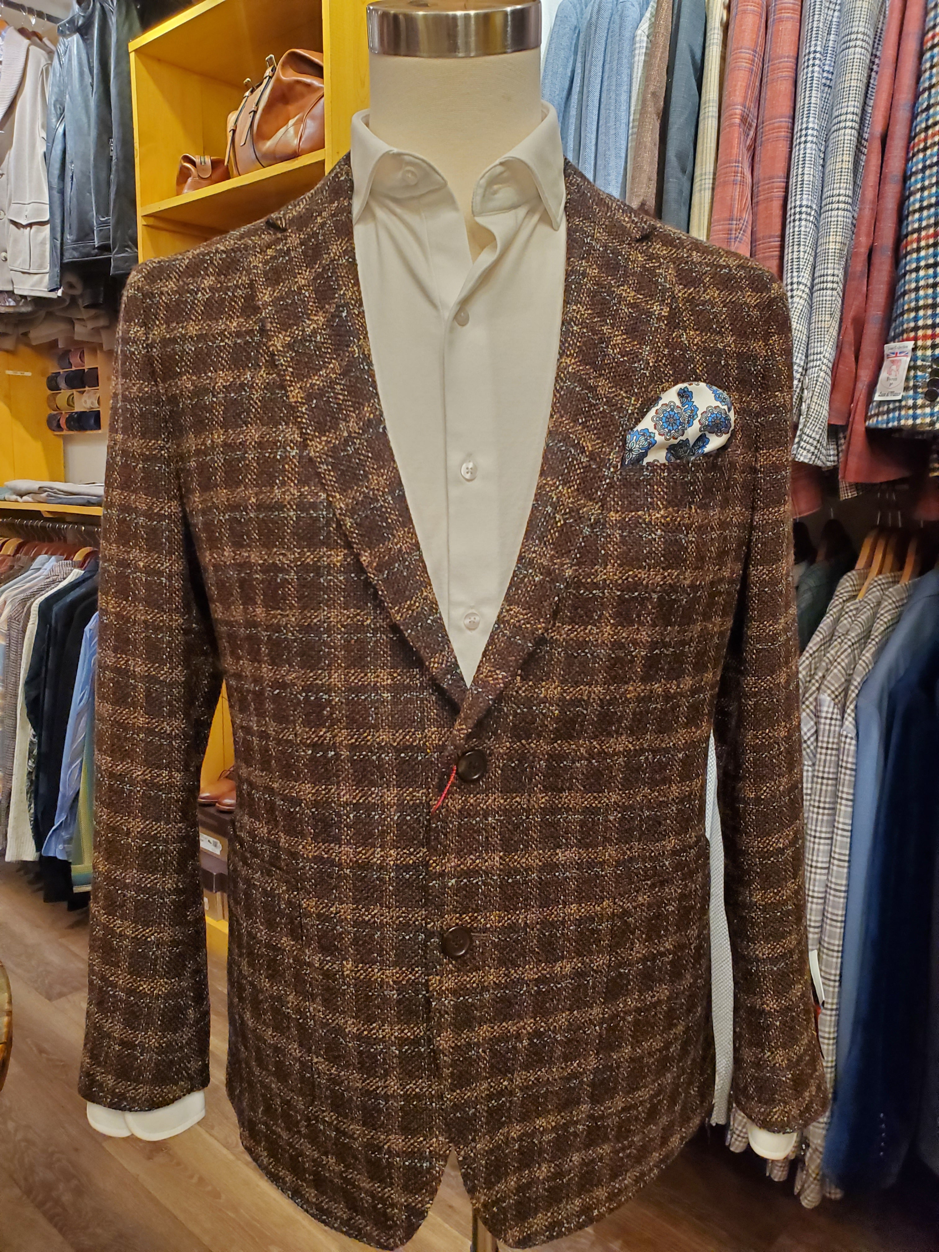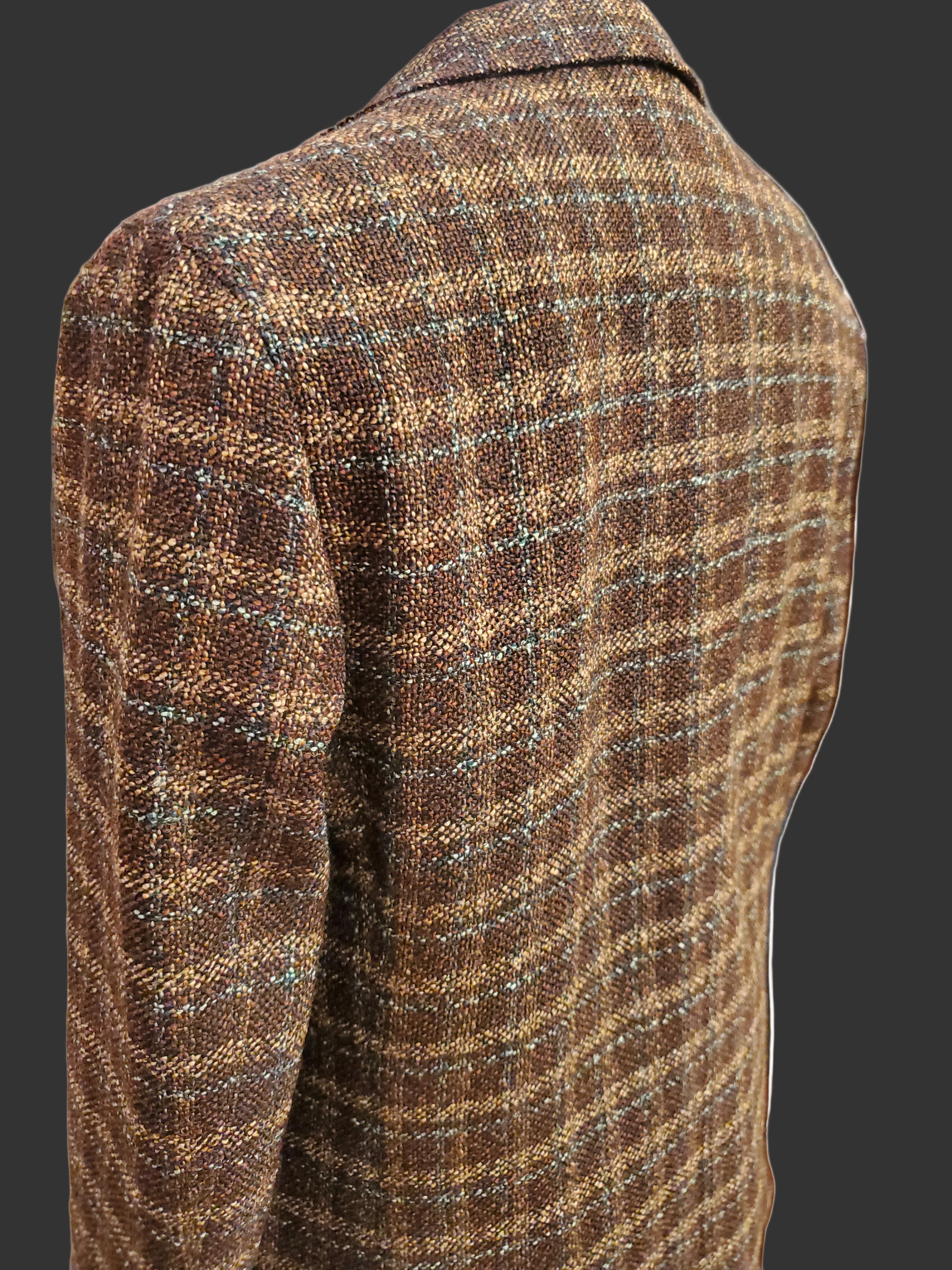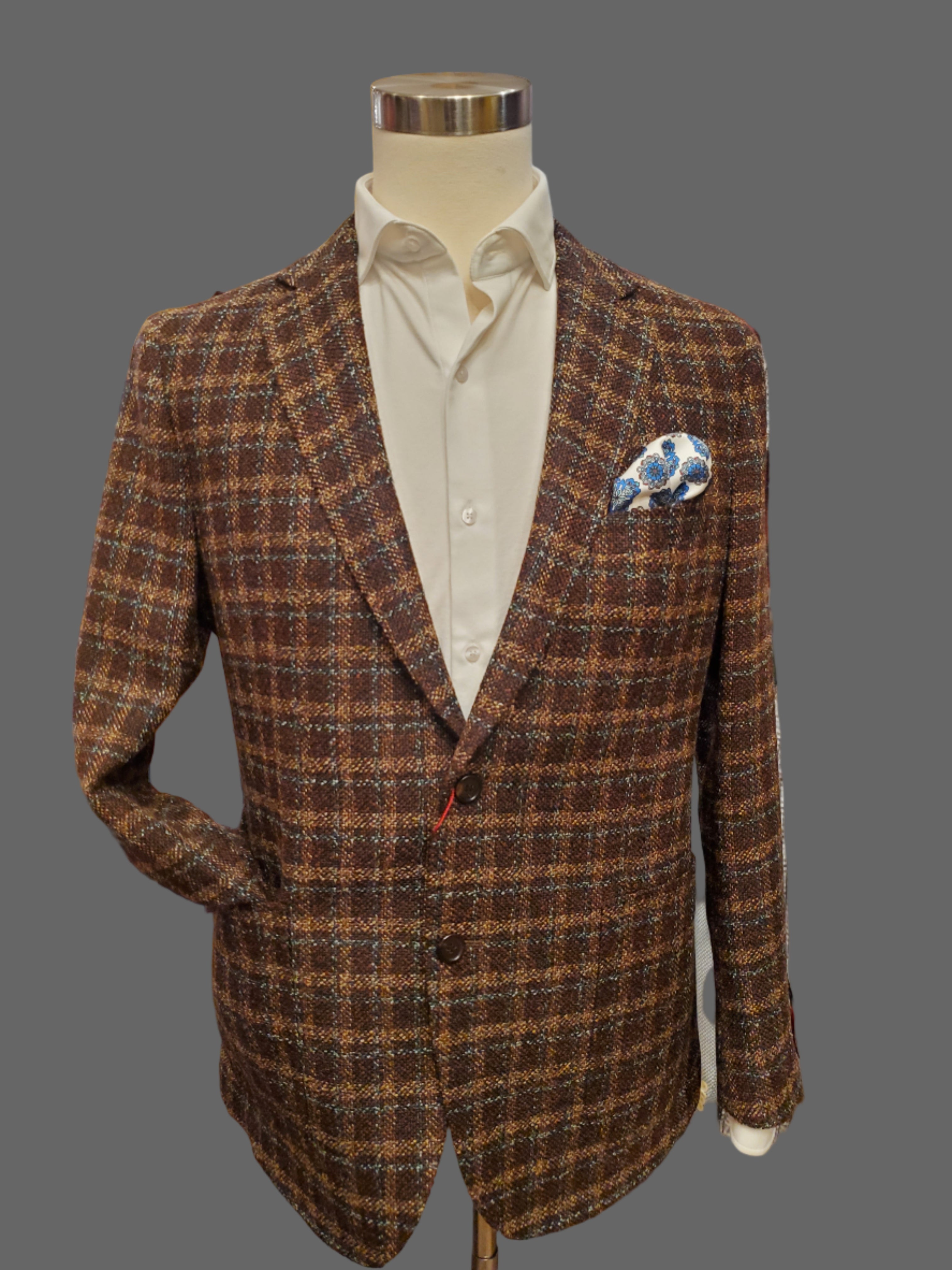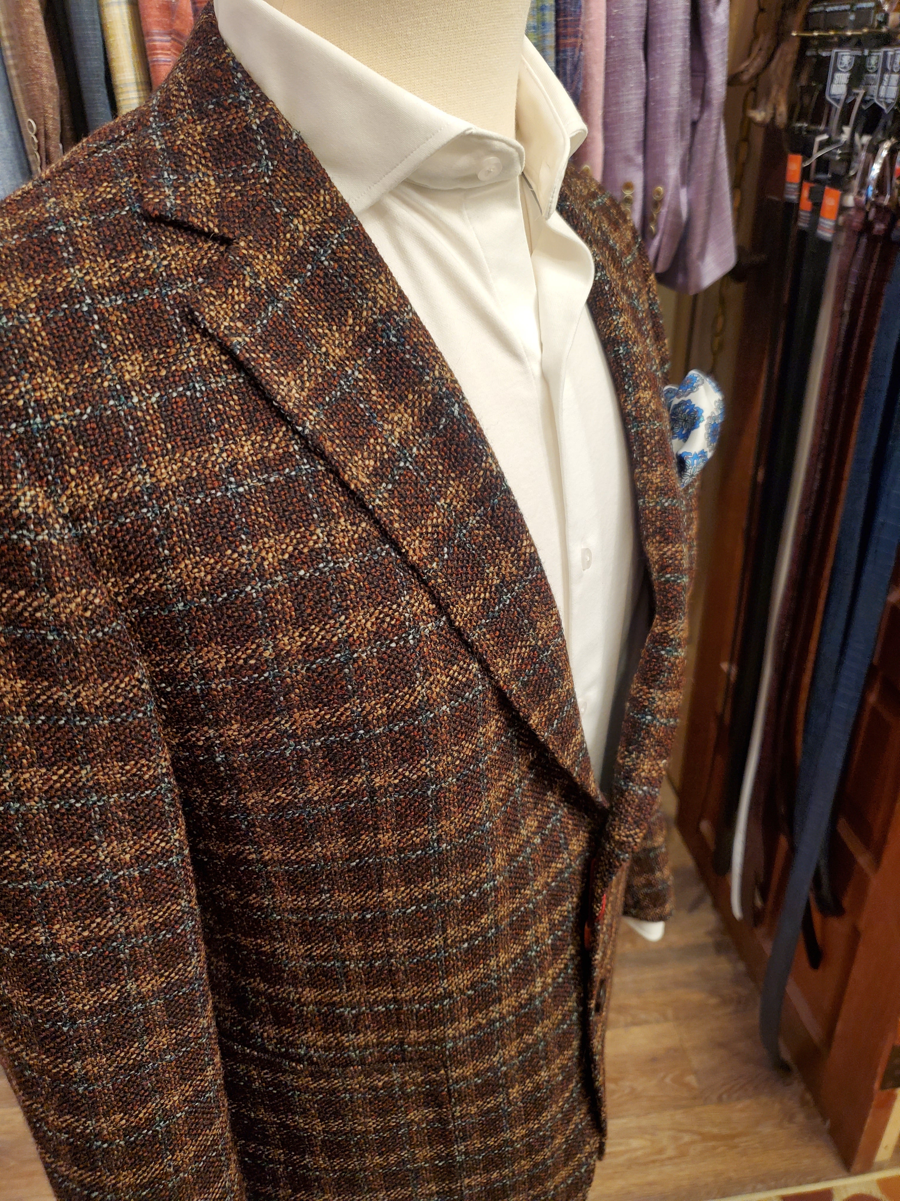 Byron Textured Plaid Premium Wool/Silk Blend Sport Coat - Brown/Teal