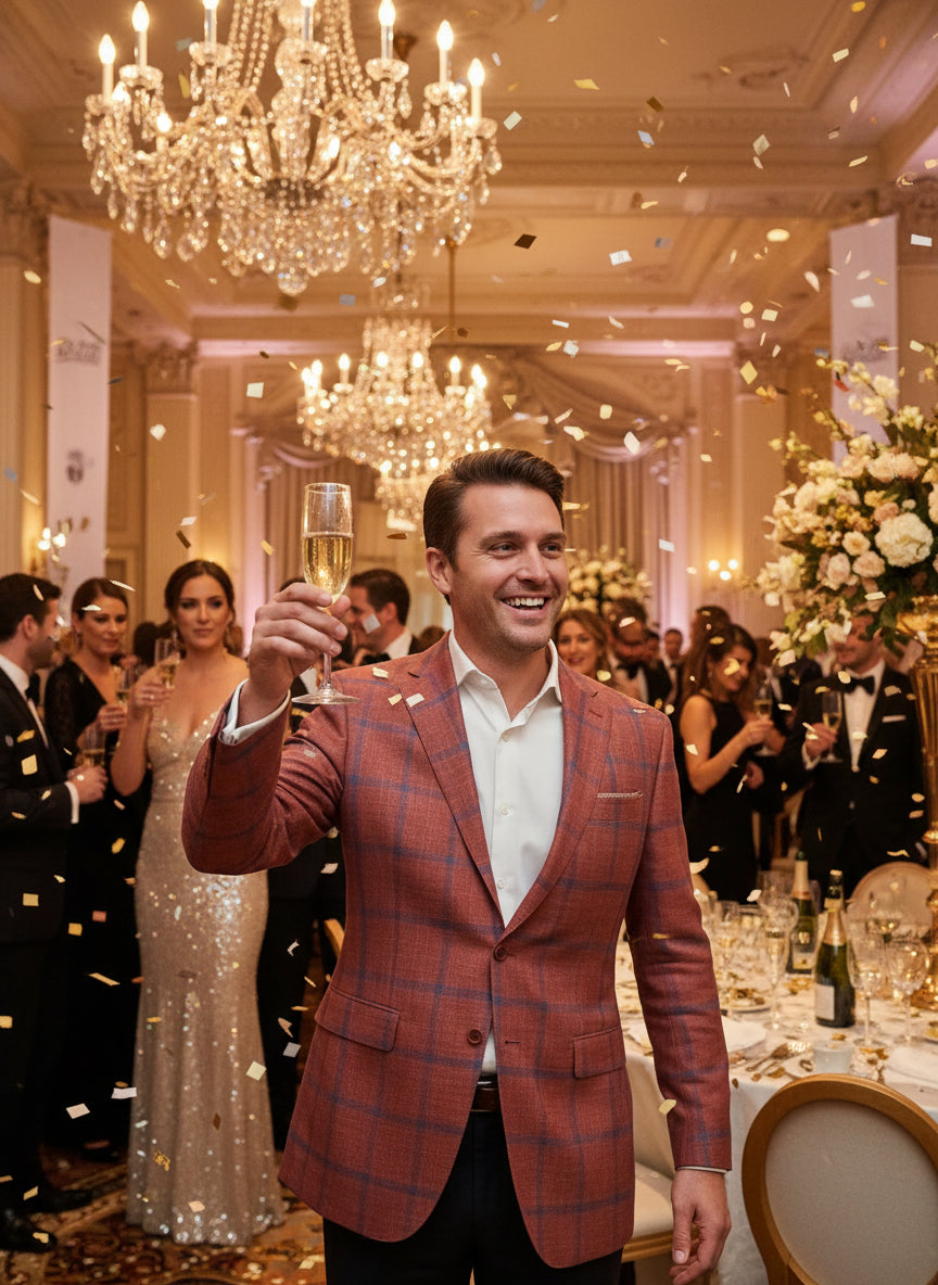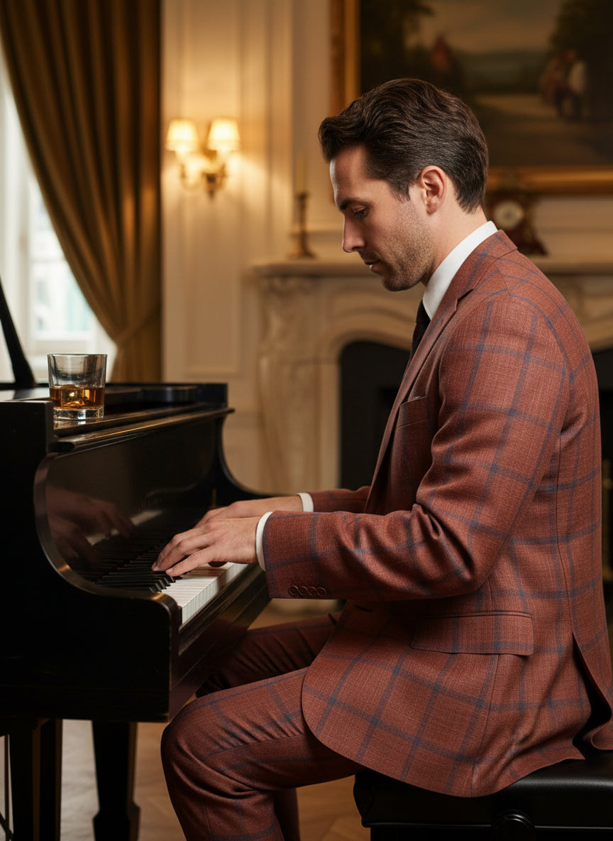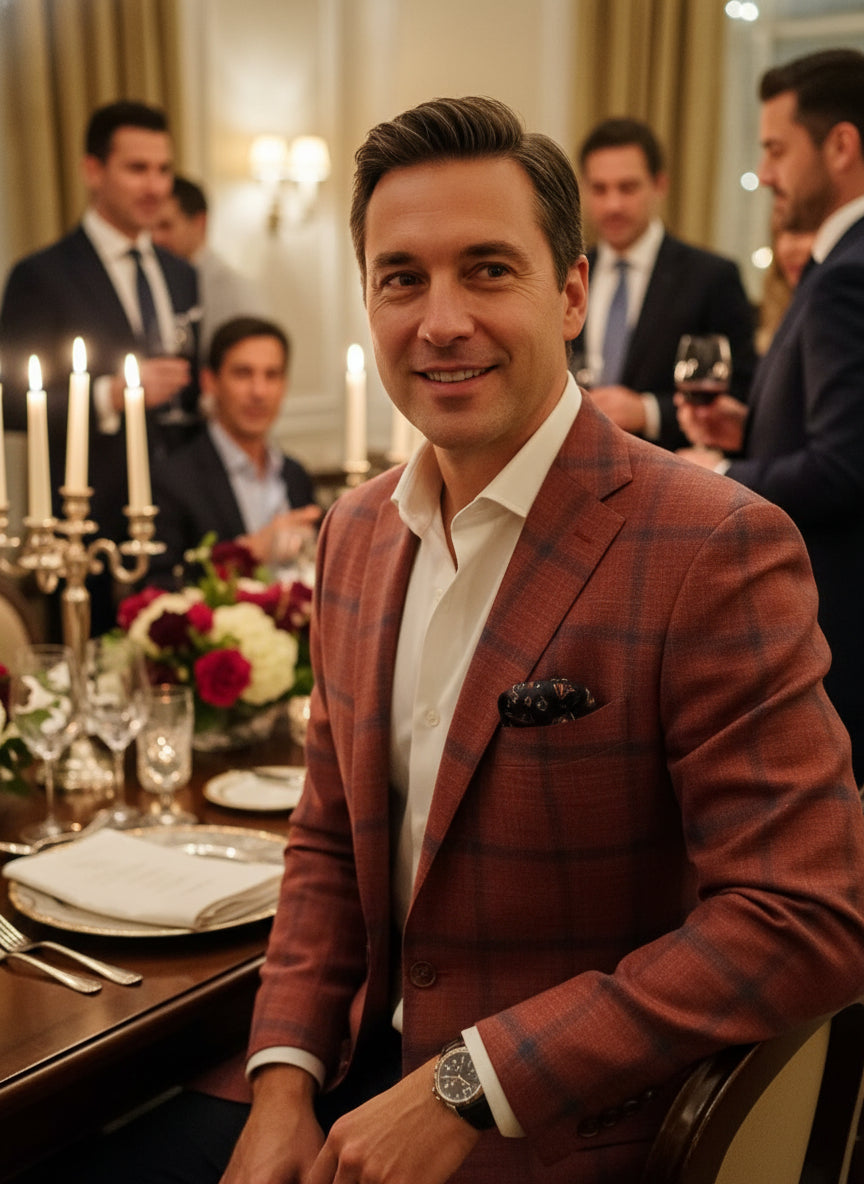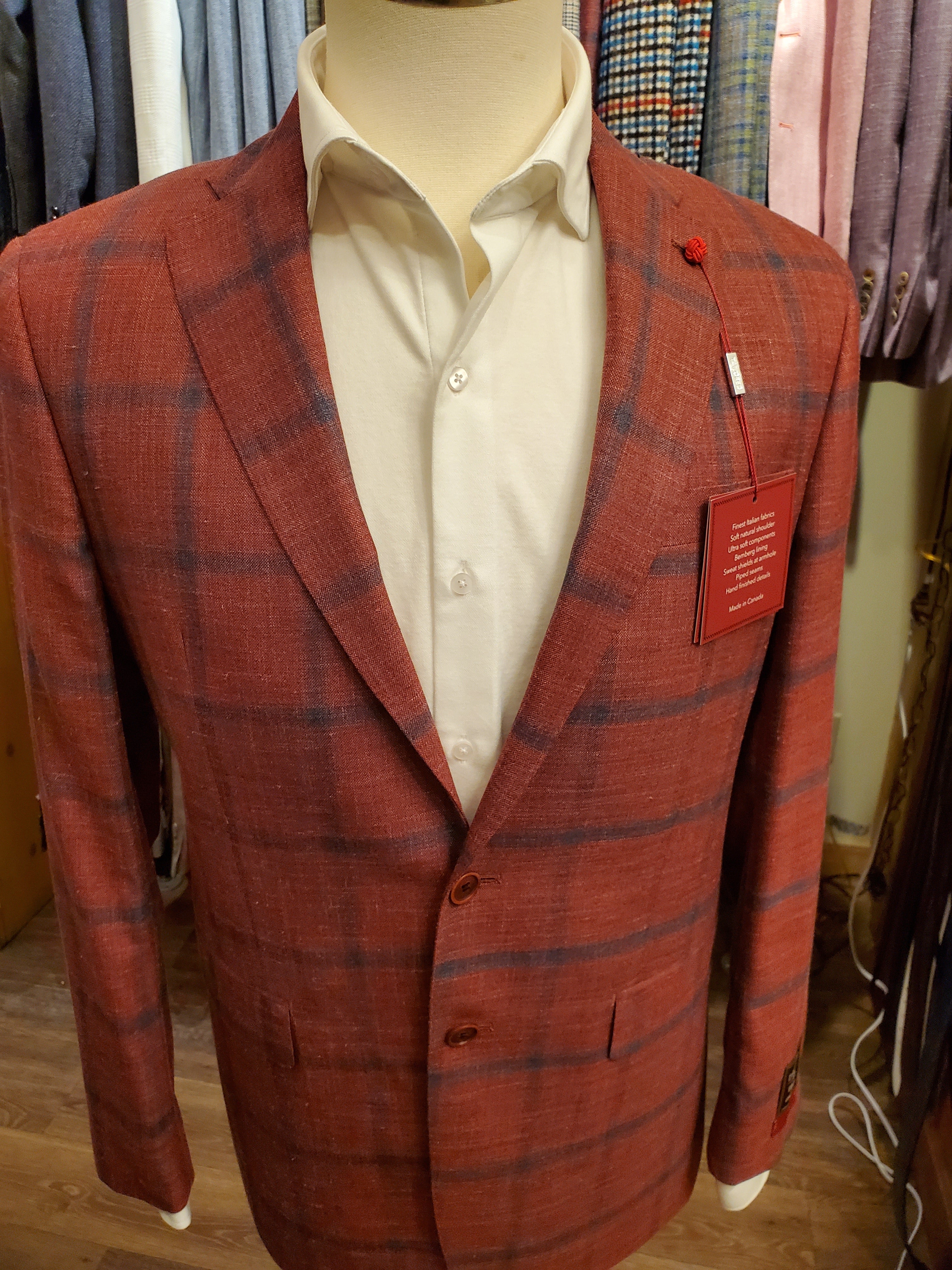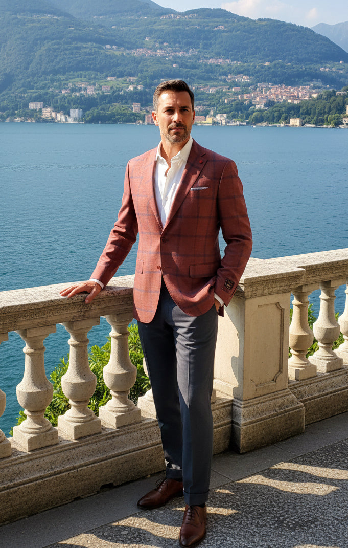 Red w/ Navy Pane Italian Summer Blend Sport Jacket
