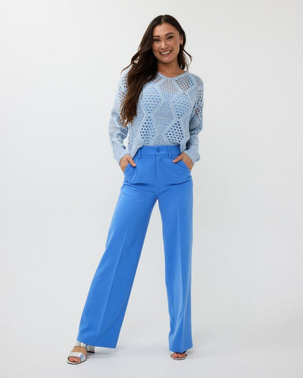 47% Polyester - 40% Acrylic - 13% Acetate Sky Blue Unique open-knit sweater with check pattern. This fine sweater is...