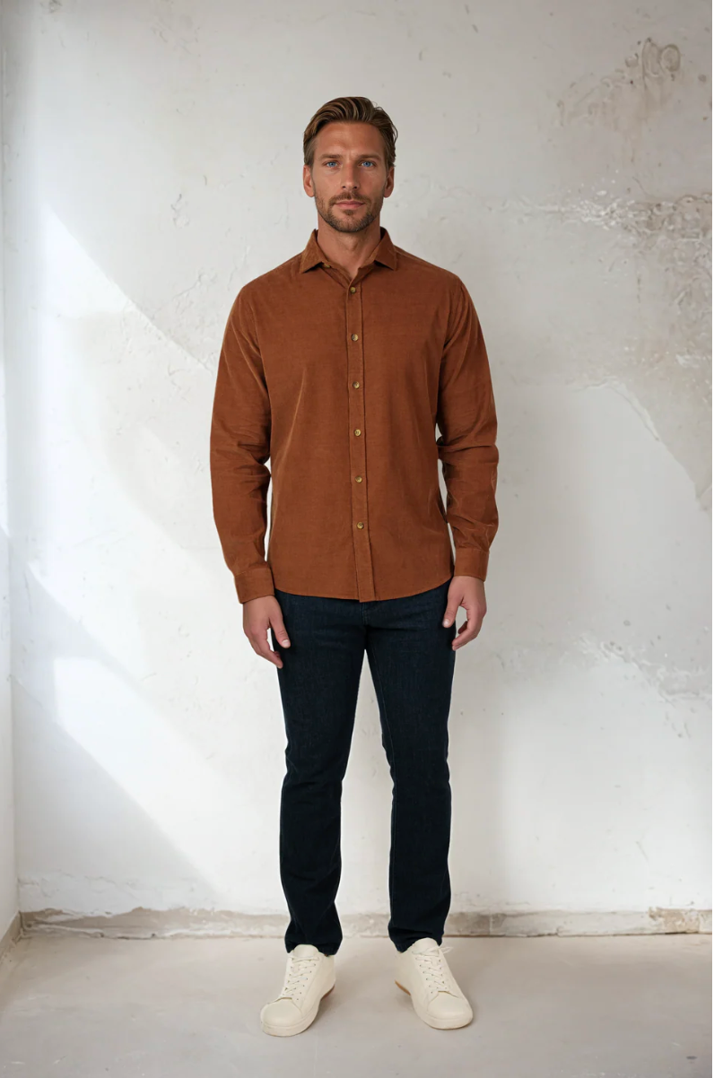 Timeless and tailored, the TRAVERSE - Medium Brown Corduroy Shirt from our Traverse Collection offers pure cotton comfort with a sophisticated edge. Designed for those who appreciate natural fibers and classic construction, this style is as versatile as it is elevated.